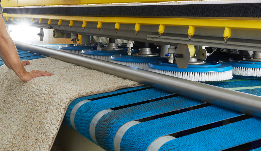 Otomatik Bantlı Yıkama: Bilgisayar kontrollü makinelerde, onlarca fırça halının her noktasına eşit baskı yaparak bitkisel şampuanlarla derinlemesine temizlik sağlar. Bu aşamada halının ön yüzü kadar arka yüzü de temizlenir.